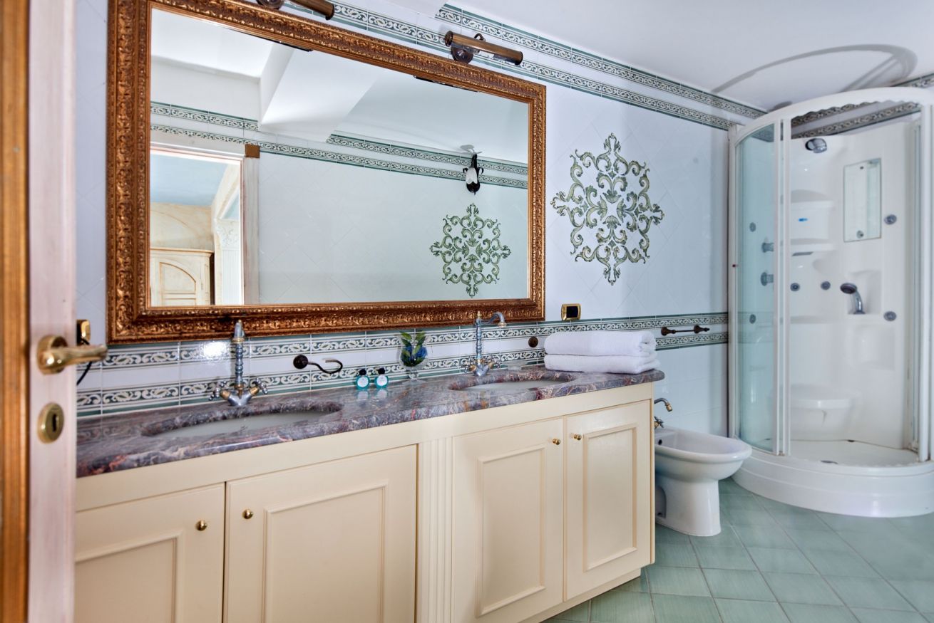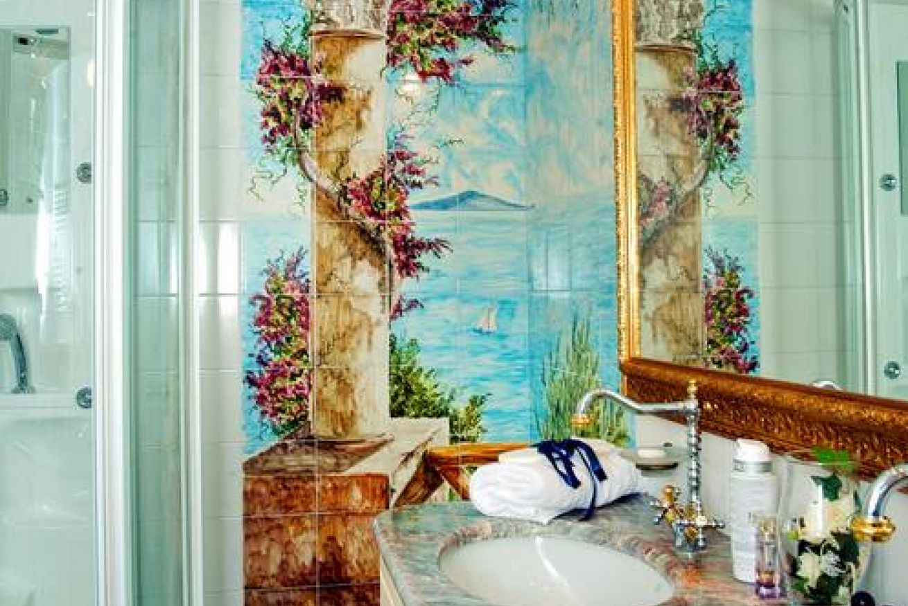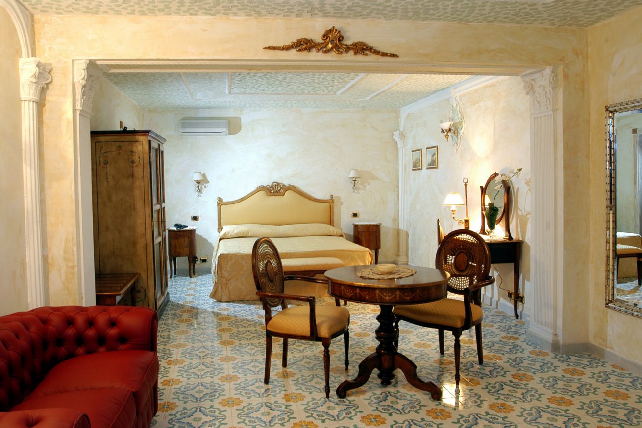 Spaziosa suite arredata con mobili artigianali e piastrelle vietresi dipinte a mano. Dispone di un’ampia finestra panoramica con vista sul mare e sul suggestivo tramonto caprese. La suite è impreziosita da stucchi, marmi, tessuti di pregio e un grande bagno decorato con maioliche dipinte a mano. Letto matrimoniale king-size, con possibilità di aggiungere un letto singolo. Prima colazione inclusa.
